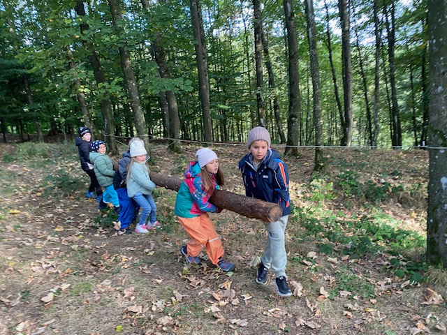 Der Wald wird zur Bühne neuer Möglichkeiten für die Kinder. Das Miteinander entwickelt sich positiv und wird anders als in geschlossenen Räumen auf die Probe gestellt. Für die Vorschulklasse ist der Waldtag eine große Bereicherung.